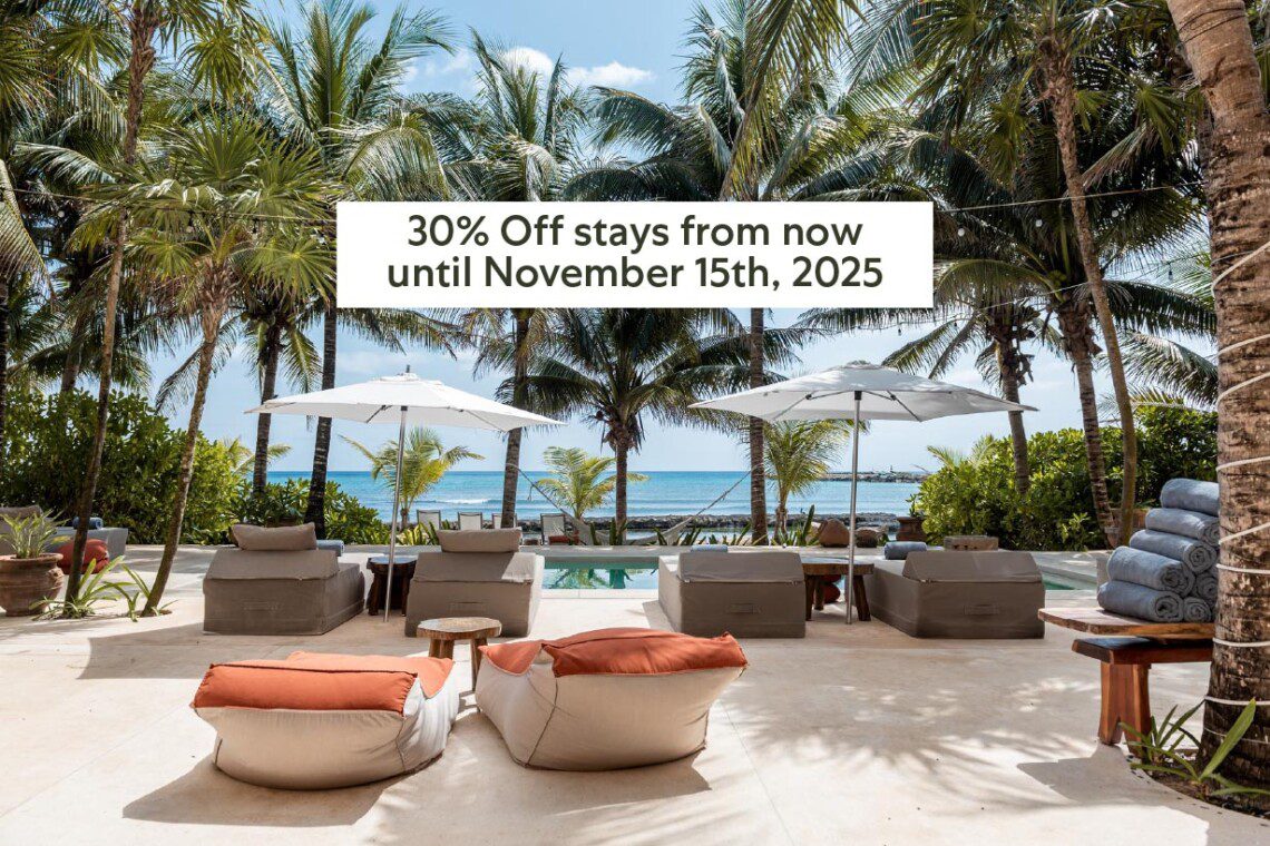 Hacienda Corazon is a luxury beachfront villa on Fatima Bay, Puerto Aventuras. Book as few as 4 ensuite bedrooms or the full 10 suites, hosting up to 27 guests. Enjoy a private pool, heart-shaped courtyard, game room, kayaks, and direct beach access. Fully staffed with chef, bartender, housekeeping, and concierge, it’s perfect for weddings, retreats, and family getaways. Exclusive privacy with Riviera Maya’s best attractions just minutes away.